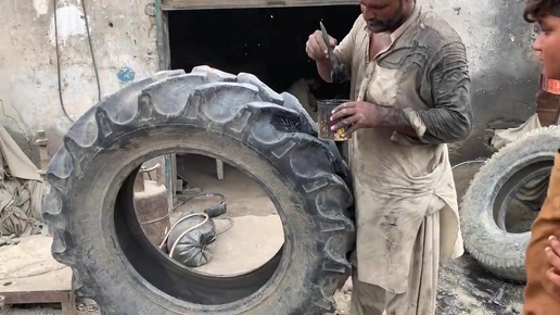 Ремонт старых Гигантских шин в Местной мастерской Уникальный процесс ремонта Большой шины