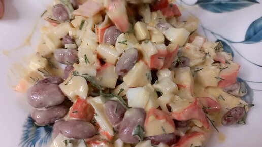 Нашла легкий рецепт👌/Салат с фасолью, крабовыми палочками и яйцами/Вкуснятина