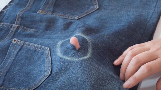 Как без ниток заделать дырку (порез) в джинсах и другой одежде с помощью ленты для склеивания ткани