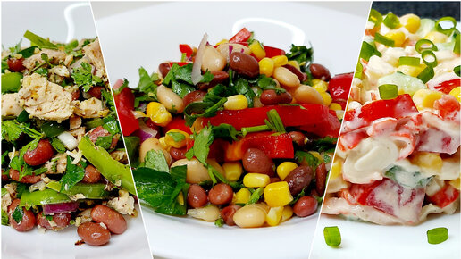 Три рецепта вкусных и простых салатов🥗 ПП салатики для ужина или на праздничный стол👍🏻