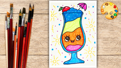 Как нарисовать напиток в бокале. Простой рисунок маркерами