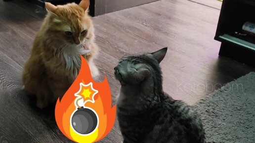 Боевая кошка Ириска и Добрый рыжий кот Вольт. Разборки кошек за 9 месяцев