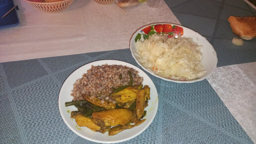 Чем занимаюсь на работе, на ужин куриные крылышки с фасолью и гречкой