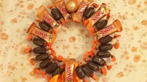 Новогодний рождественский венок из конфет