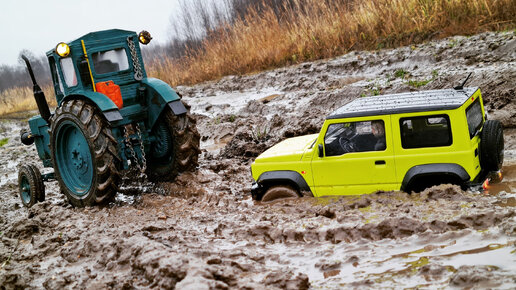 Suzuki Jimny на пульте не едет! ... Вытаскиваем из грязи трактором! RC OFFroad 4x4