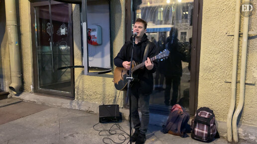 Петербуржцы выбирают «Сплина» – скромный уличный музыкант спел и сыграл на гитаре по заявкам песню «Романс»