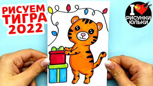 Как нарисовать Тигра с подарком на Новый Год 2022.