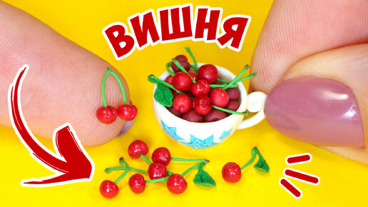 Мини вишня в чашке для кукол. Как слепить ягоды из полимерной глины diy мастер класс Анна Оськина