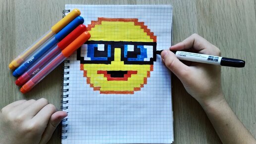 КАК НАРИСОВАТЬ СМАЙЛИК В ОЧКАХ - РИСУЕМ ПО КЛЕТОЧКАМ // how to draw