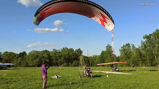 Взлетает мотодельтаплан и паралёт