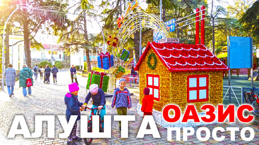 Алушта. Праздничный Приморский парк и набережная. Море красивое. Люди в восторге. Зима декабрь Крым