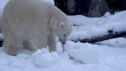 Белая медведица охотится на рыбу