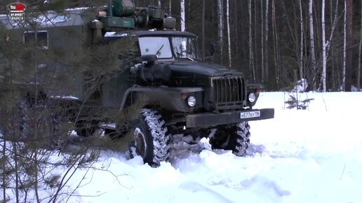 УРАЛ 4320 пробивает зимнюю дорогу