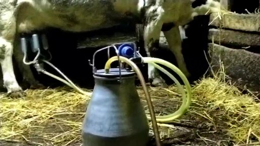 Доят корову доильным аппаратом. Ездили в деревню специально посмотреть