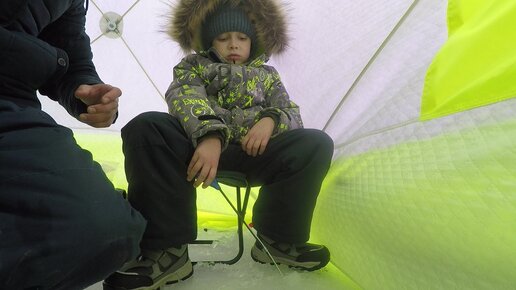 Новички на зимней рыбалке. Палатка Медведь Куб-3, первая установка!
