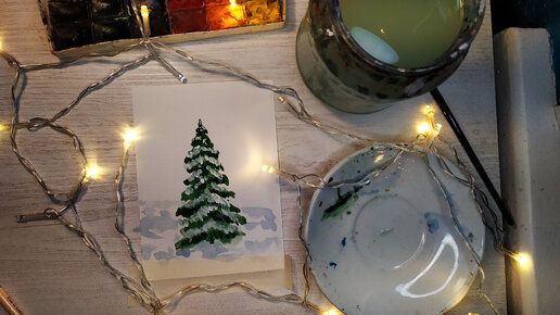 Новый метод рисования ёлки водой и акварелью