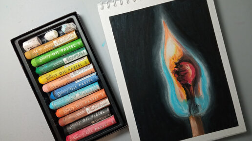 "Огонёк" рисую масляной пастелью и ватными палочками, таймлапс видео