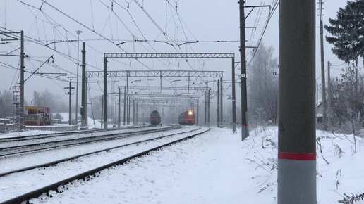 Электропоезд ЭД2Т-0027 едет по станции Манихино-I