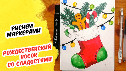 НОВОГОДНИЙ НОСОК СО СЛАДОСТЯМИ: Как нарисовать рисунок на Новый Год
