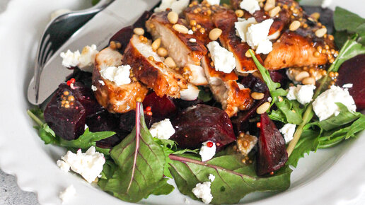 САЛАТ СО СВЕКЛОЙ И КУРИНЫМ СТЕЙКОМ