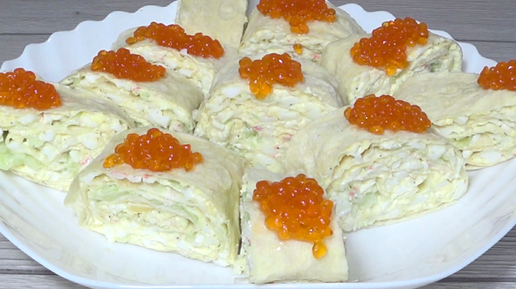 Рулет из лаваша с крабовыми палочками вкусная закуска за 5 минут на Праздничный стол!