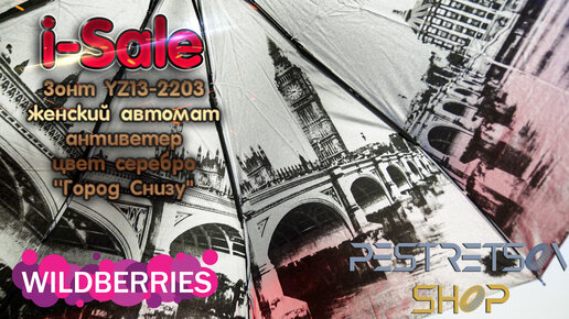 ► ЗОНТ YZ13-2203 ЖЕНСКИЙ АВТОМАТ, АНТИВЕТЕР, СЕРЕБРО ''ГОРОД СНИЗУ" 🔴 РАСПАКОВКА 📦 И ОБЗОР ⬇️