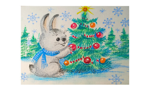 Как нарисовать Новогоднюю открытку с зайчиком.