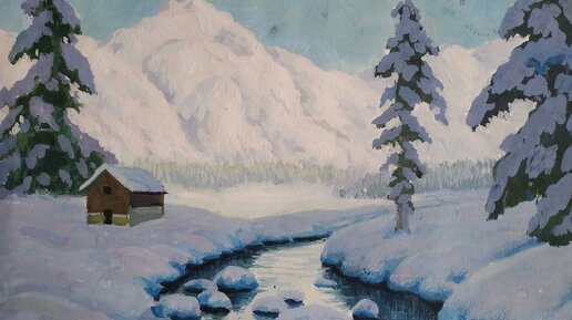Рисуем зимний пейзаж гуашью. Творим дома. Часть 1
