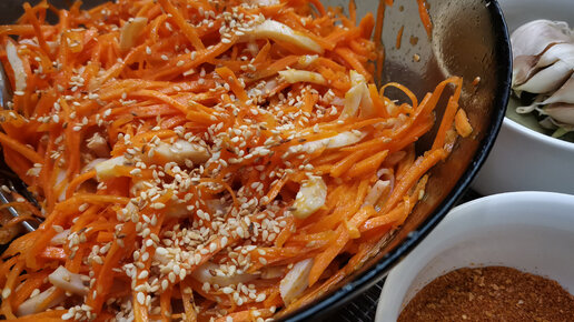 Кальмары по корейски с морковью и кунжутом
