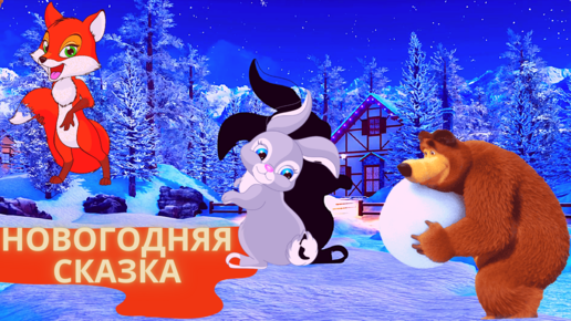 Новогодняя сказка с животными. Заяц, волк, лиса, медведь.