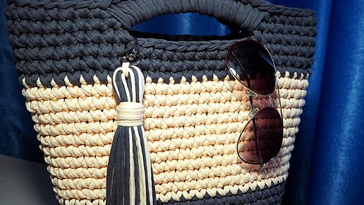 Вяжем сумку-шоппер из трикотажной пряжи.