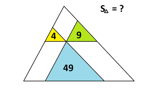 Найти площадь большого треугольника,зная площади треугольника внутри.
