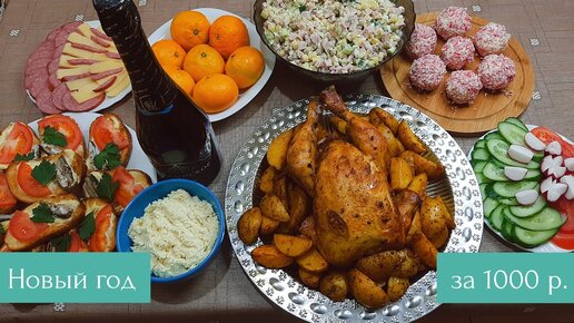 Новогодний стол за 1000 рублей в стиле 90-х. На семью из 5 человек.