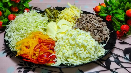 Салат""Козел в огороде""салат с майонезом готовится очень легко и быстро