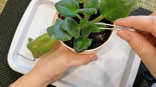 Показываю, как чувствует себя пересаженая фиалка. Убрала у неё лишнюю розетку