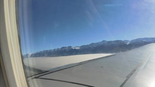 Смотрю через иллюминатор: снежные горы, горы Казахстана под крылом самолёта. Незабываемый полёт. Мягкая посадка. Нестрашно!