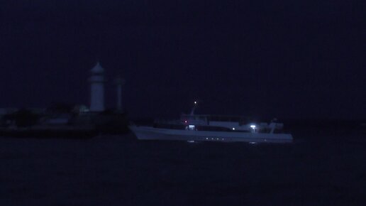 Ялта. Шторм на Набережной. Одинокий кораблик едва справляется с волнами. Страшно за тех, кто на борту
