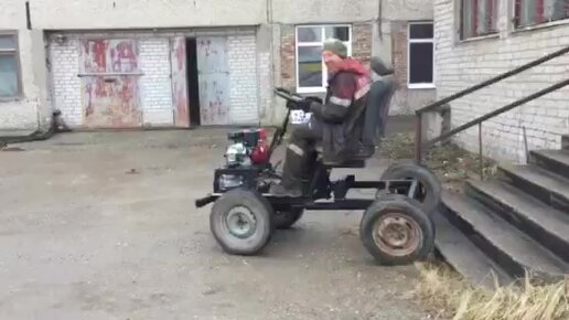 Первые испытания полноприводного минитрактора. Первое падение)))