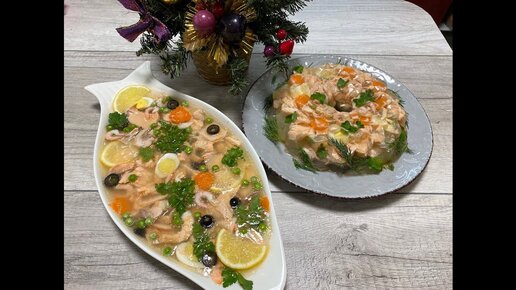 Заливное из рыбы. Сёмга с креветками
