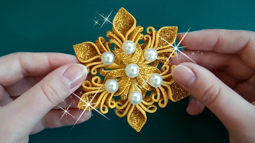 Золотая снежинка своими руками 🎇 Новогоднее украшение снежинка из фоамирана