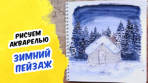 ЗИМНИЙ ПЕЙЗАЖ СО СНЕЖНЫМИ ЕЛЯМИ: Как нарисовать акварелью поэтапно