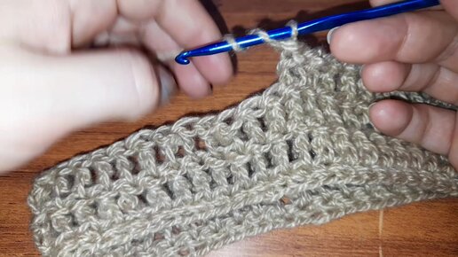 Вяжем крючком двойные столбики с накидом. Показываю, как они выглядят.
