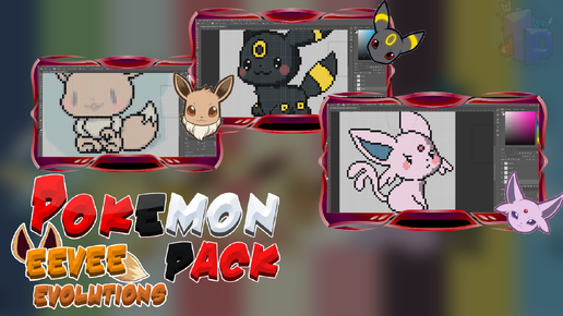 Pixel art Timelapse[🐾Pokemon Eeve-Evolution Pack]/Eeve❤️Espeon💫Umbreon ✨\ Схемы для Термомозаики