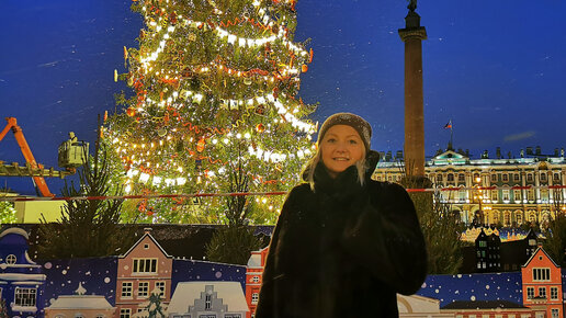 Монтаж елки и сказочной инсталляции на Дворцовой площади. Санкт-Петербург