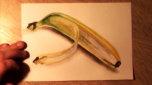 Как нарисовать реалистичный банан акварелью и цветными карандашами