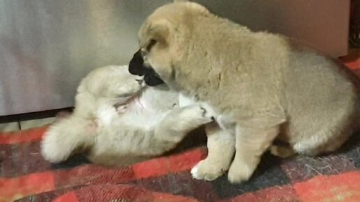 Щенкам Сиба-ину 1 месяц и игры уже становятся серьёзней