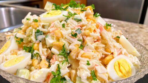 Вкусный салат с крабовыми палочками! Крабовый салат (классический) сочный, быстрый праздничный салат