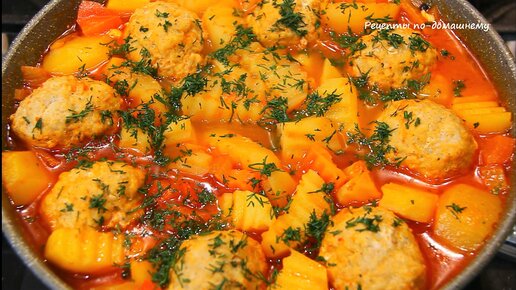 Готовлю на ужин тушеную картошку вместе с фрикадельками в одной сковороде, получается быстро, сытно и вкусно!