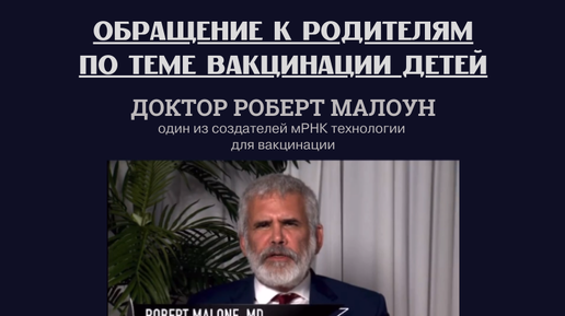 Доктор Robert Malone: обращение к родителям по теме вакцинации детей