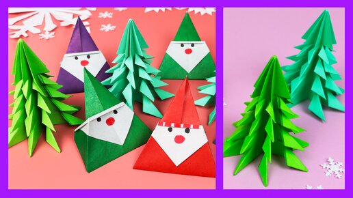 Дед Мороз из бумаги + Объемная елочка из бумаги на Новый год своими руками